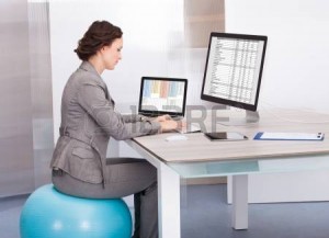 Aussi appelé ballon suisse, le ballon peut être une façon de varier sa posture au bureau, mais il ne doit pas remplacer la chaise ergonomique ajustable. L’utilisation sur de courtes périodes du ballon d’exercice permettra de tonifier les muscles abdominaux, dorsaux et obliques, qui sont responsables de maintenir votre équilibre sur le ballon. Cessez d’utiliser le ballon dès que vous ressentez de la fatigue musculaire. Attention, le ballon ne convient pas à tous. Consultez votre chiropraticien si une ancienne blessure ou d’autres problèmes de santé influencent votre équilibre ou votre stabilité.